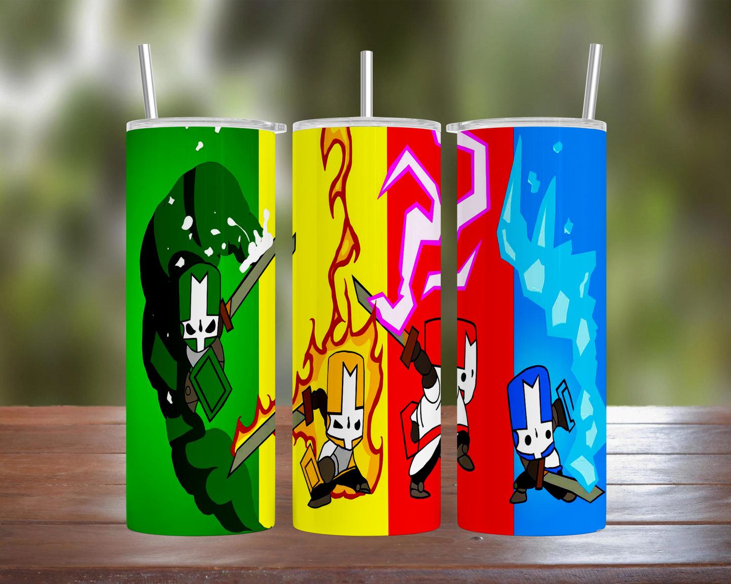 Our Tumblers are made from Stainless Steel & are sublimated with the images. The display image is of different angles of the single tumbler so you can see the whole image & how it would look on a finished product. Our tumblers come with your choice of which type straw you would prefer (Plastic or Metal), & the additional option for adding a non-slip Rubber Bottom or leaving it plain.