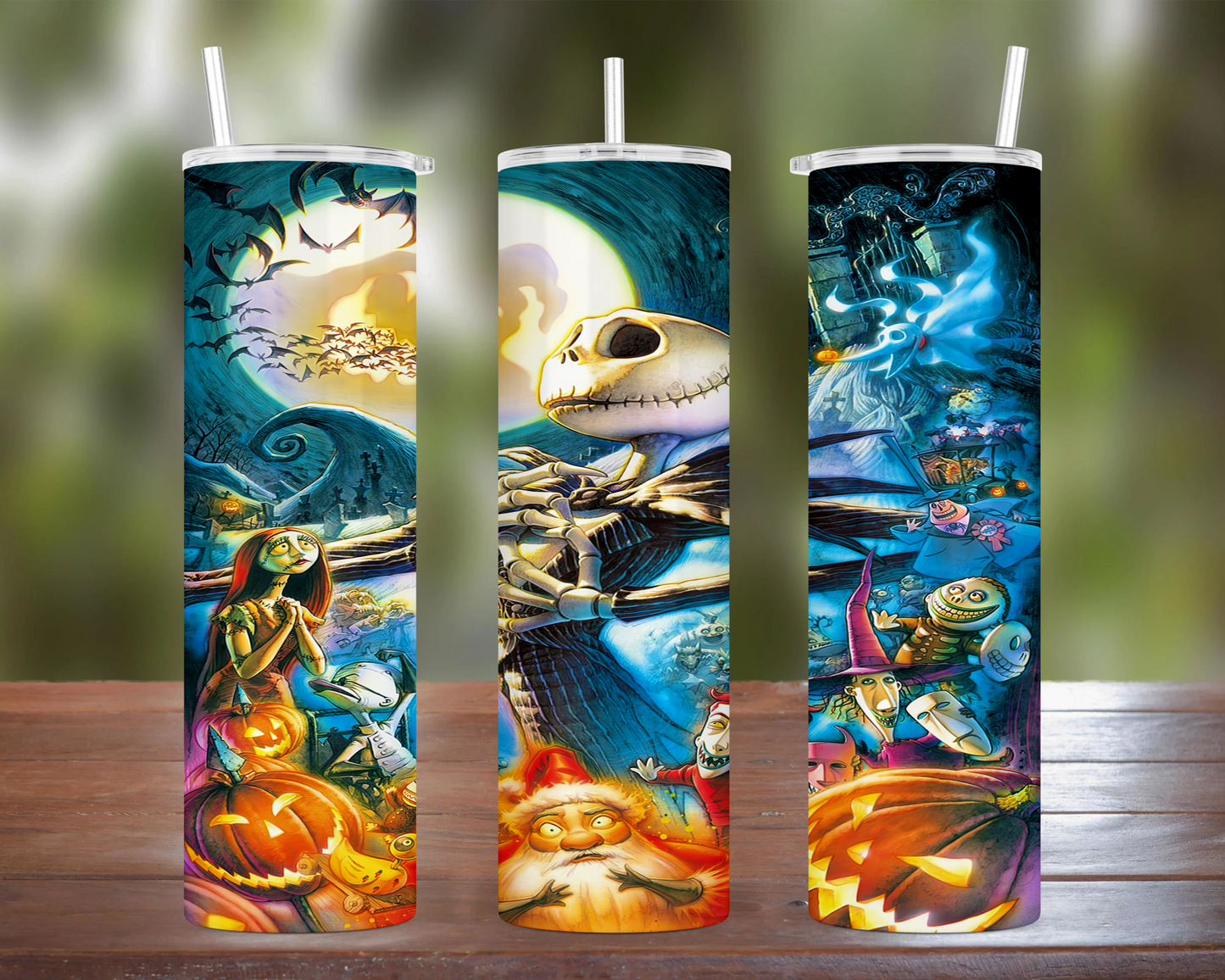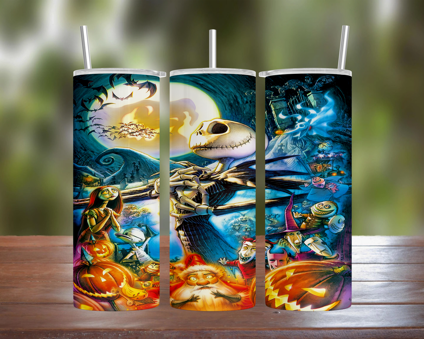 Our Tumblers are made from Stainless Steel & are sublimated with the images. The display image is of different angles of the single tumbler so you can see the whole image & how it would look on a finished product. Our tumblers come with your choice of which type straw you would prefer (Plastic or Metal), & the additional option for adding a non-slip Rubber Bottom or leaving it plain.
